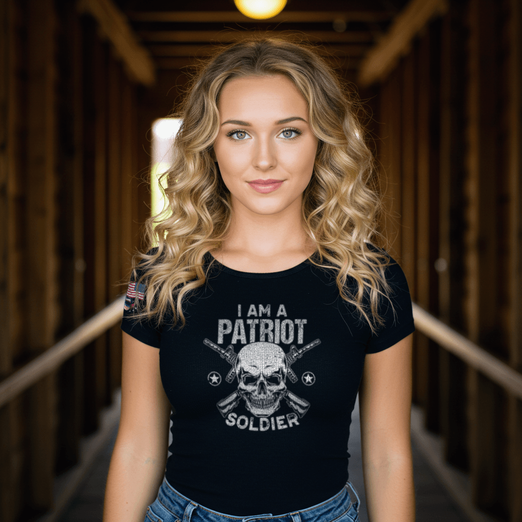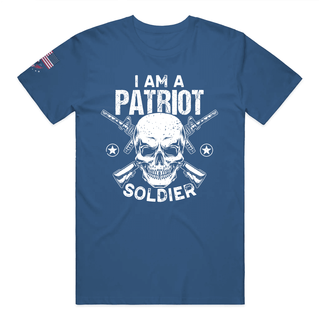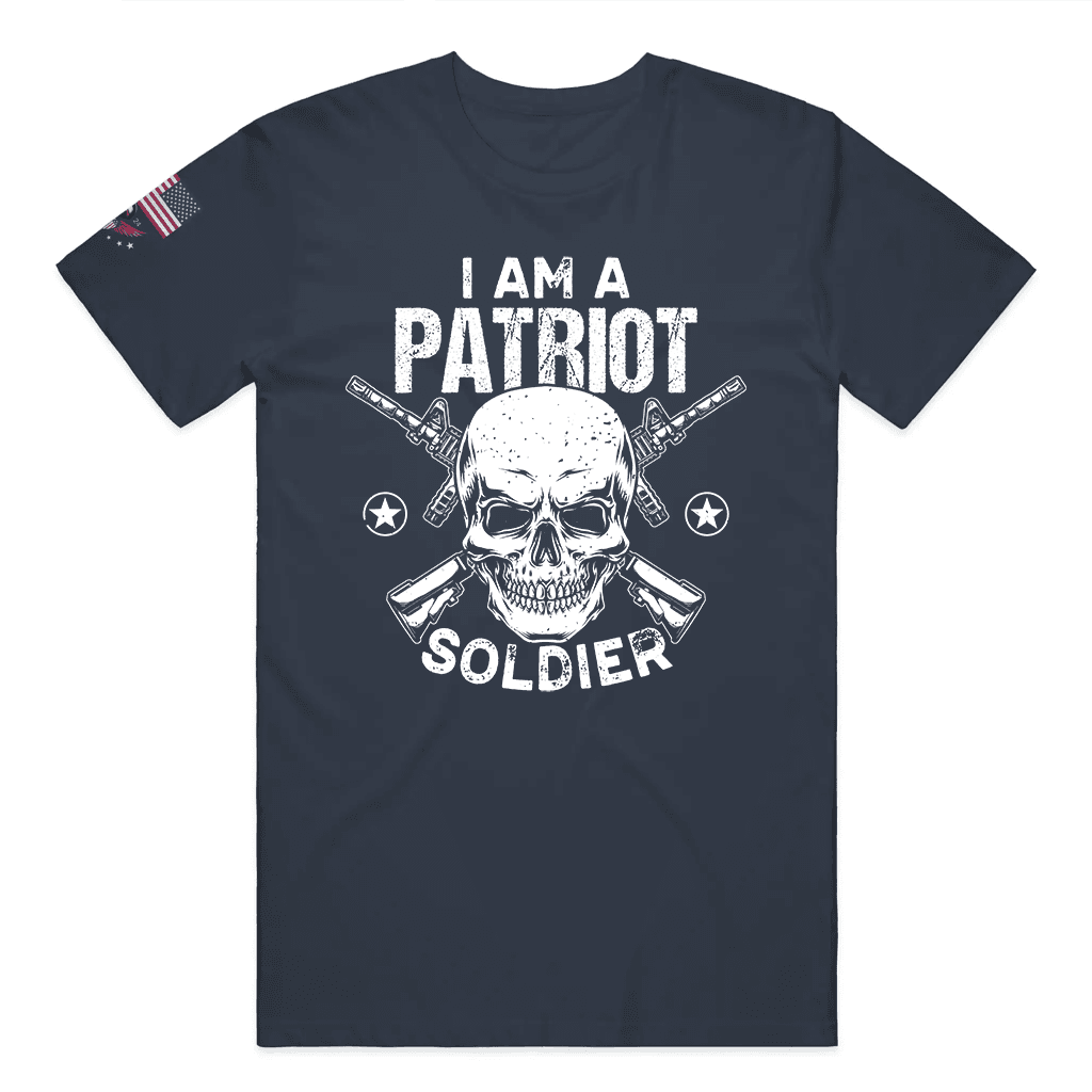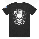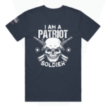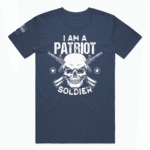 This tee doesn’t whisper—it roars. Featuring a battle-worn skull backed by crossed rifles and bold patriotic lettering, it’s built for those who see themselves as warriors for freedom, not followers of trends. Tough, gritty, and unapologetically American, this design honors the fighting spirit that keeps liberty alive.