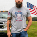 This tee doesn’t whisper—it roars. Featuring a battle-worn skull backed by crossed rifles and bold patriotic lettering, it’s built for those who see themselves as warriors for freedom, not followers of trends. Tough, gritty, and unapologetically American, this design honors the fighting spirit that keeps liberty alive.