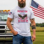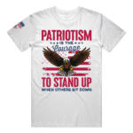 Bold and uncompromising, this tee declares that true patriotism takes courage. Stand tall and let your shirt say what others won’t.