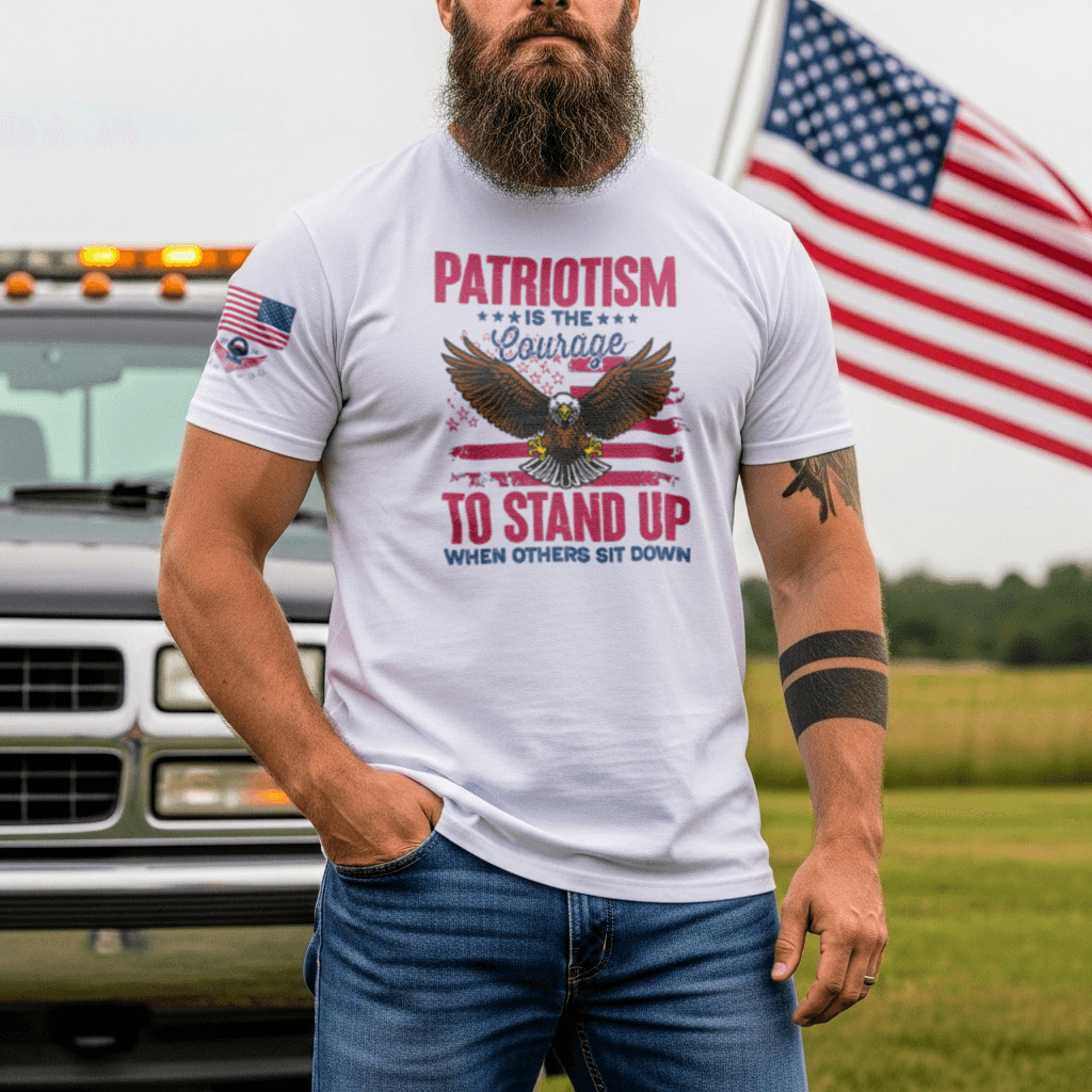 Bold and uncompromising, this tee declares that true patriotism takes courage. Stand tall and let your shirt say what others won’t.